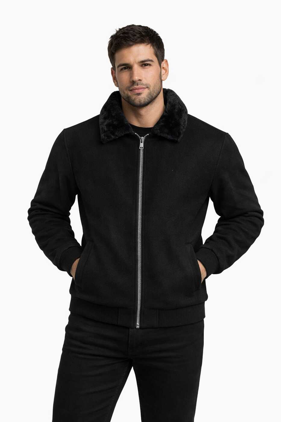 DAR KESİM KÜRKLÜ YAKA KAŞE MONT SİYAH